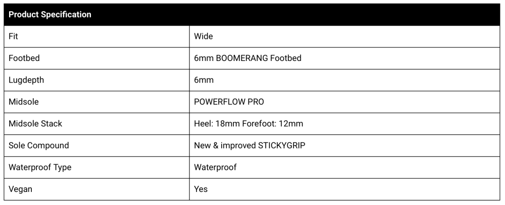 Dempingen leveres av det letteste, mest dempete og responsive skum til dags dato: POWERFLOW PRO. Dette mellomsåleskummet lar deg føle deg lett og smidig på turen, med den perfekte balansen mellom demping og bakkefølelse.