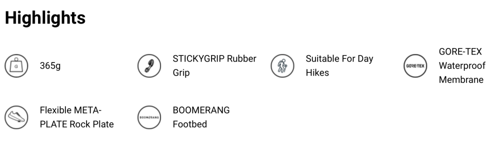 ROCLITE GTX er fullpakket med beskyttende funksjoner, har en fleksibel META-PLATE for beskyttelse under føttene mot steiner, og en tåbeskyttelse for å beskytte mot stubber på trerøtter eller andre farer på stien.