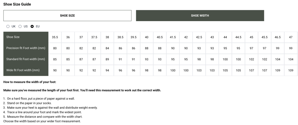 TRAIFLY SPEED leveres som de andre nylanserte Inov-8 skoene i 3 breddestørrelser: Standard, Wide og Precision. Wide gir ekstra god plass til tærne, og er foretrukket av mange av våre Norske testløperne. Se bilde med mål for å velge rett bredde og størrelse for deg.