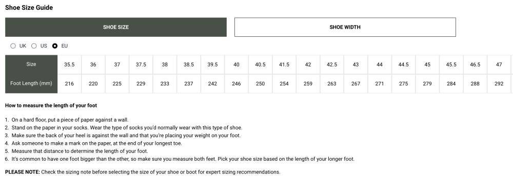 TRAIFLY leveres som de andre nylanserte Inov-8 skoene i 2 breddestørrelser: Standard og Wide. Wide gir ekstra god plass til tærne, og er foretrukket av mange av testløperne. Se bilde med mål for å velge rett bredde og størrelse for deg.